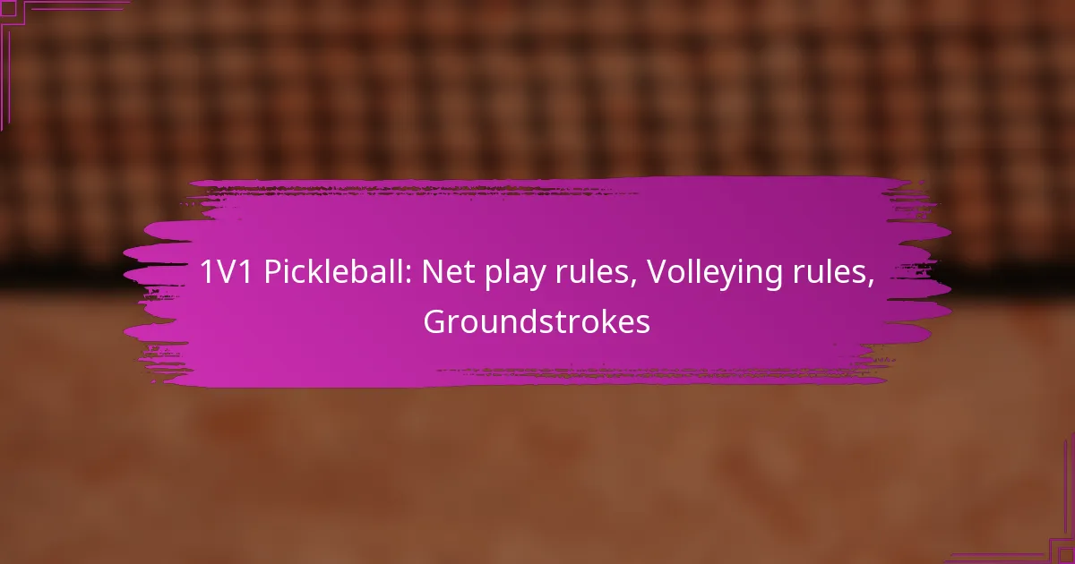 In 1V1 pickleball, mastering net play, volleying, and groundstrokes is essential for competitive gameplay. Net play involves specific strategies and rules that dictate player interactions at the net, while volleying requires an understanding of the no-volley zone and proper techniques. Groundstrokes, made after the ball bounces, are fundamental for maintaining rallies and controlling the pace of the game.
